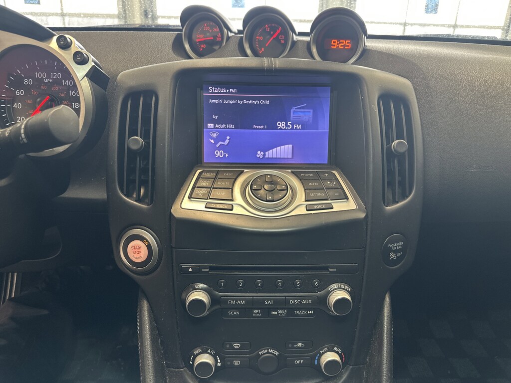 THIS VEHICLE ALSO HAS THE FOLLOWING OPTIONS AND FEATURES:370Z Sport Tech, 2D Coupe, 3.7L V6, RWD, AM/FM radio: SiriusXM, Automatic temperature control, CD player, Electronic Stability Control, Exterior Parking Camera Rear, High intensity discharge headlights: Bi-Xenon, Navigation System, Radio: 2 DIN AM/FM/CD Bose Audio System, SynchroRev Match, Wheels: 19" x 9" Fr/19" x 10" Rr RAYS Forged Alloy, 4-Wheel Disc Brakes, 8 Speakers, ABS brakes, Air Conditioning, Alloy wheels, Anti-whiplash front head restraints, Auto-dimming Rear-View mirror, Body Color Splash Guards (4-Piece), Brake assist, Bumpers: body-color, Carpeted Floor Mats, Carpeted Trunk Mat, Delay-off headlights, Driver door bin, Driver vanity mirror, Dual front impact airbags, Dual front side impact airbags, DVD-Audio, Four wheel independent suspension, Front anti-roll bar, Front Bucket Seats, Front Center Armrest, Front reading lights, Garage door transmitter: HomeLink, Heated door mirrors, Illuminated entry, Illuminated Kick Plates, Leather Shift Knob, Leather steering wheel, Low tire pressure warning, Occupant sensing airbag, Outside temperature display, Overhead airbag, Panic alarm, Passenger door bin, Passenger vanity mirror, Power door mirrors, Power steering, Power windows, Radio data system, Rear anti-roll bar, Rear window defroster, Remote keyless entry, Security system, Speed control, Speed-sensing steering, Spoiler, Steering wheel mounted audio controls, Tachometer, Tilt steering wheel, Traction control, Trip computer, Turn signal indicator mirrors, Variably intermittent wipers, Voltmeter, and Woven Carbon Cloth Seat Trim.